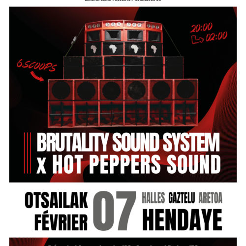 Euskarazko ekitaldiak Concert – Brutality Sound System X Hot Peppers Sound 7 Ots Théâtre – Ni errekadista nintzen 27 Ots Théâtre – Hasian hasi 24 Mar Concert avec “Tapia eta Leturia” 27 Mar Théâtre – Nor naizen baneki 29 Mar Danse – Azala 19 Api Concert avec Jurgi Ekiza 13 Mai